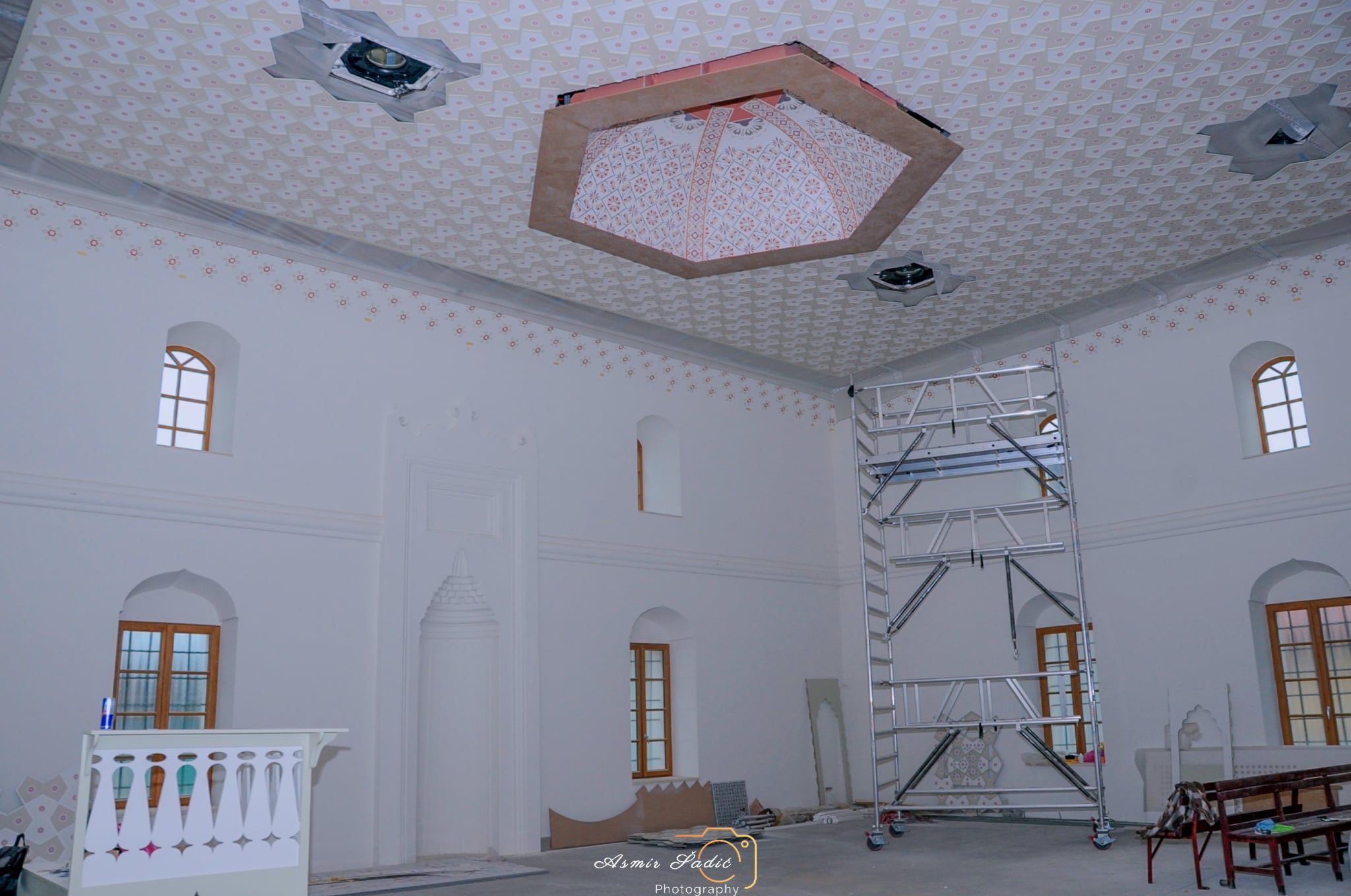 U sklopu rekonstrukcije unutrašnjosti Azizija džamije u proteklim danima intenzivno se izvode radovi na postavljanju kupole, montiranju ćursa i plafona ispod mahfila.
