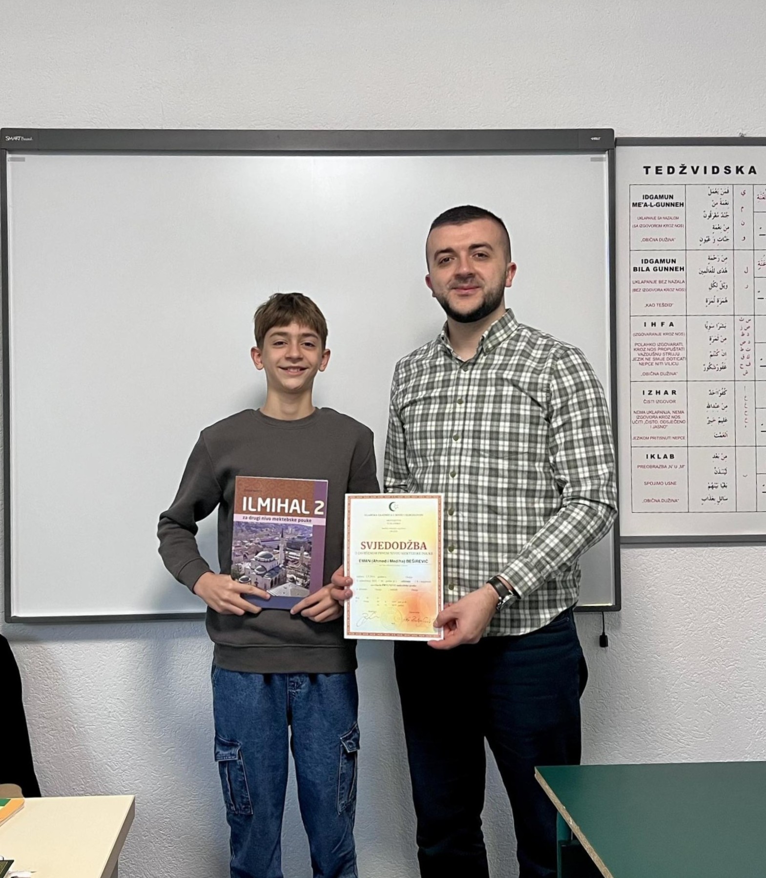 Čestitamo Emanu, kao i njegovim roditeljima koji ga redovno šalju u mekteb i pružaju mu podršku u njegovom napredovanju.